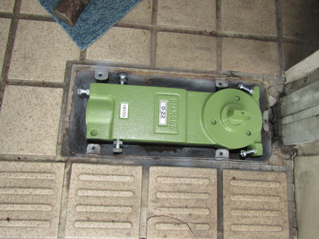 両開き扉の開閉が悪くなり、フロアヒンジのお取り替えのご依頼をいただきました。